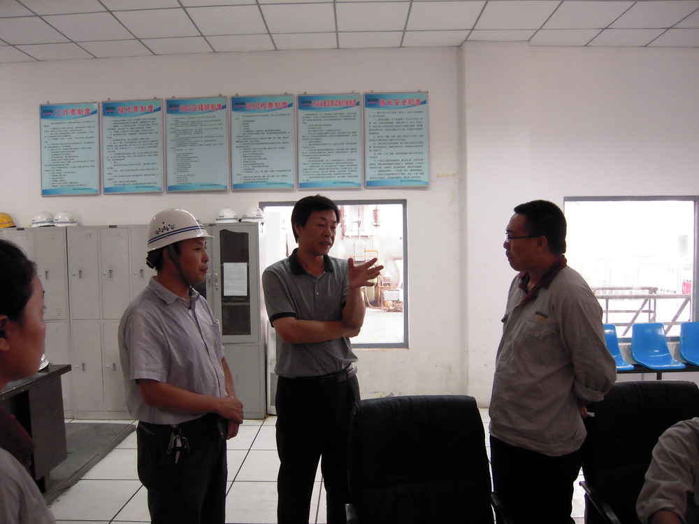 2011年7月21日,張奇董事長冒著炎炎酷暑,在投資部部長楊巍、副部長季敏海的陪同下,來到鹿泉中材節(jié)能余熱發(fā)電有限公司慰問電站員工并視察指導工作。