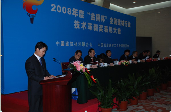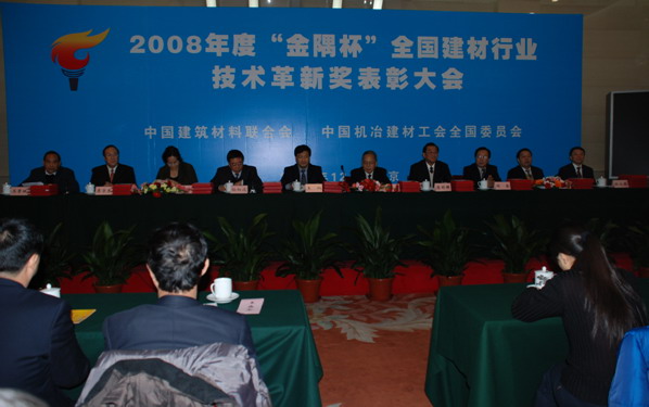 12月21日,2008年度“金隅杯”全國建材行業技術革新獎表彰大會在北京市人民大會堂隆重召開,會議公布了107個獲獎項目名單并向獲獎項目頒發了獎牌。